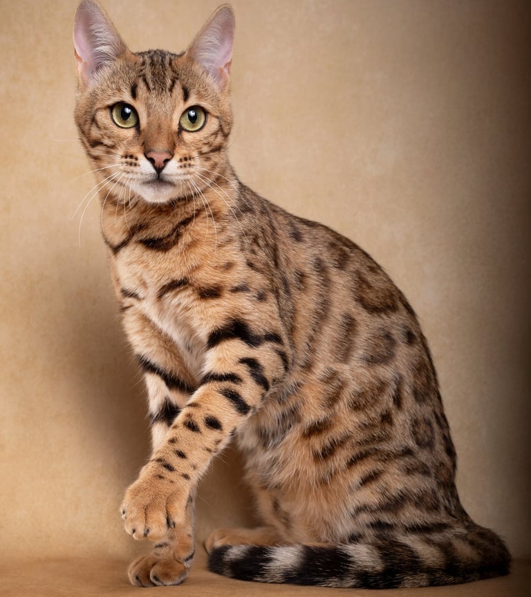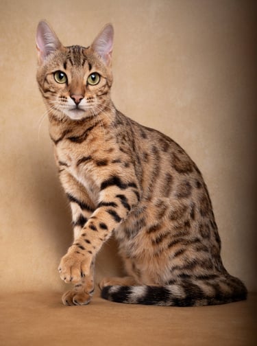 Brown tabby rosettes yeux verts
